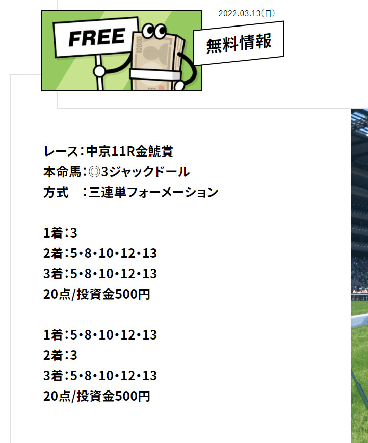 無料情報でこの結果は素晴らしく、有料情報はさらに期待出来るものであろう!