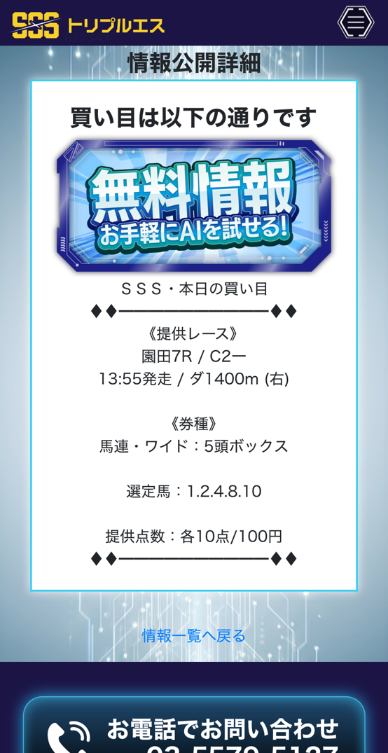 3連単1着流し、◎を軸に相手3頭、6点で無料情報挑ませてもらいました。 配当は万馬券割れだったけど6点、1点千円で80.3倍→8万3000円払い戻しなら上出来の結果ですね!