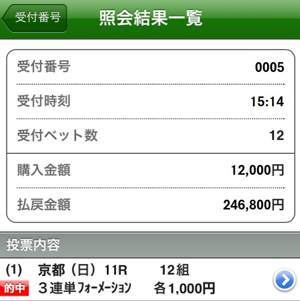 馬券代が3倍になったと思うと嬉しくて仕方ありません、2回分の飲み代が浮いた感じで嬉しいです!