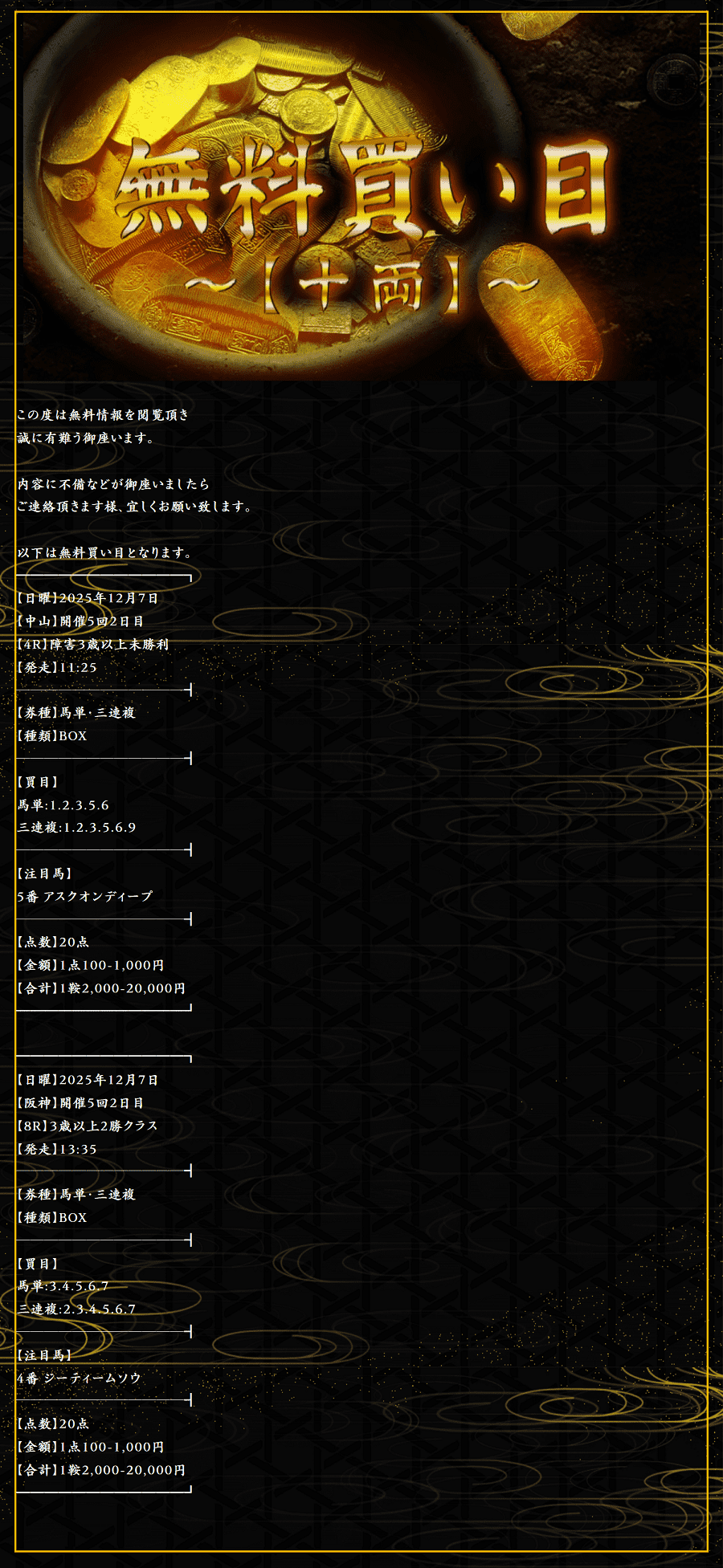 2馬券種無料予想的中! 馬単→4万4400円 3連複→3万4200円 合計7万8600円払い戻しでした! ここからは有料情報になりますが、【穴熊情報】も的中 東京11Rアルゼンチン共和国杯50万7350円払い戻しでした! 平場も重賞も当たりまくりな1日でした!