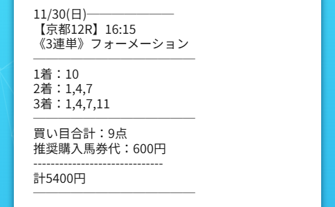 秋競馬一発目のG1的中が3連単14万馬券。 この買い目的に3着に入ったエキサイトバイオ2番手評価って事だよな。 1402.7倍決着だったけど仮にエキサイトバイオが2着だったら3連単2585.8倍で一撃2,068,640円だった。 残念ながら3着だったけどそれでも帯封突破の1,122,160円的中。 2025年も佳境に入り末恐ろしい予想サイト発見しちゃいました。