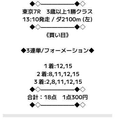 万馬券的中貰えたし5,400円の馬券代で配当も212,550円と上出来すぎる結果でした。