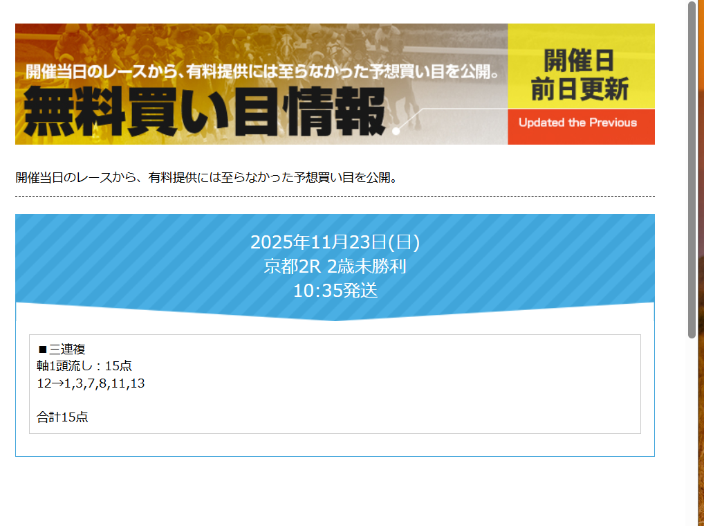 ※登録がない予想サイトなどがあればお問い合わせまでご連絡をお願いします。※